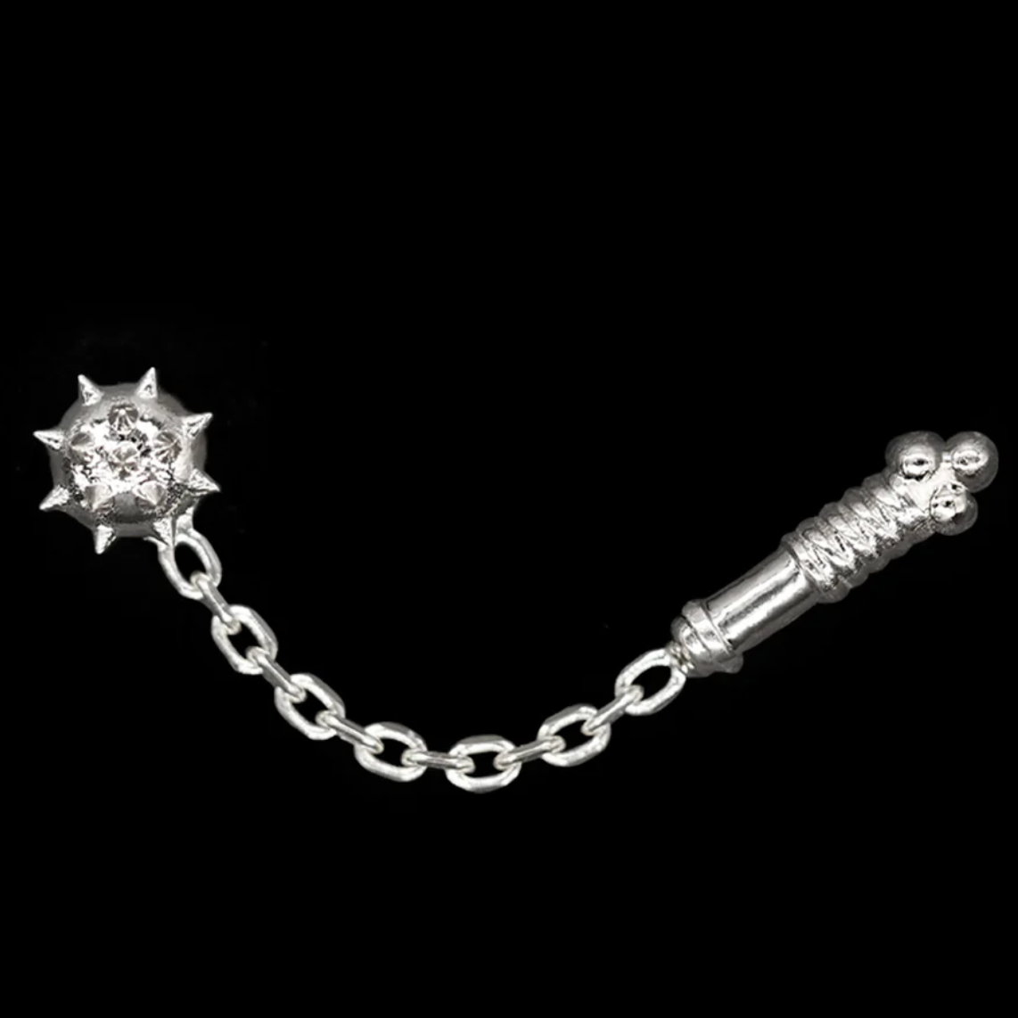 Overall size: handle is 9x2mm, spiked ball is 5x5mm