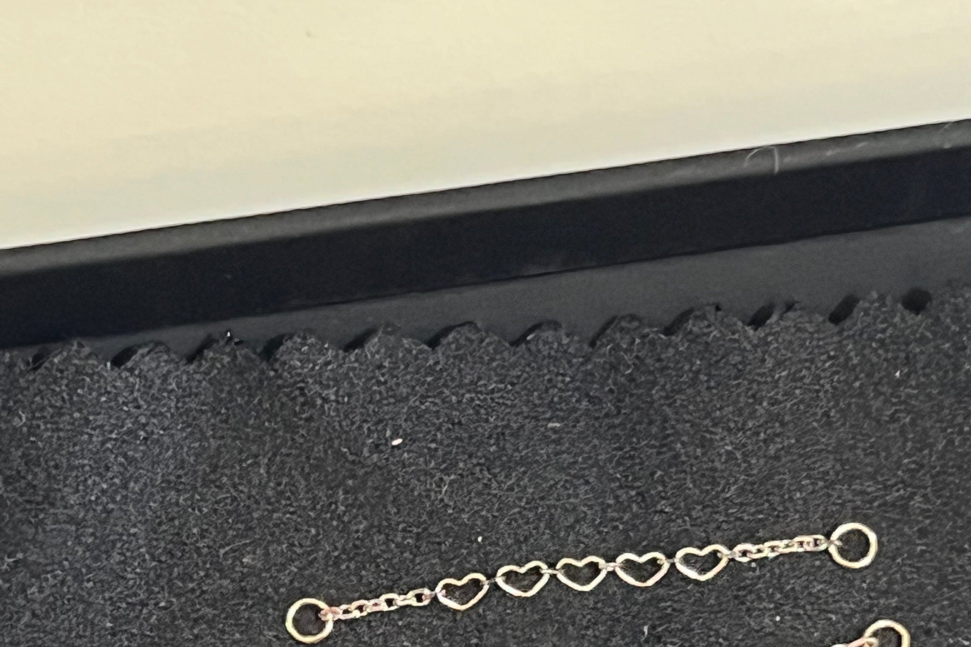 WG heart chain with five links, 27mm excluding 18g jump rings