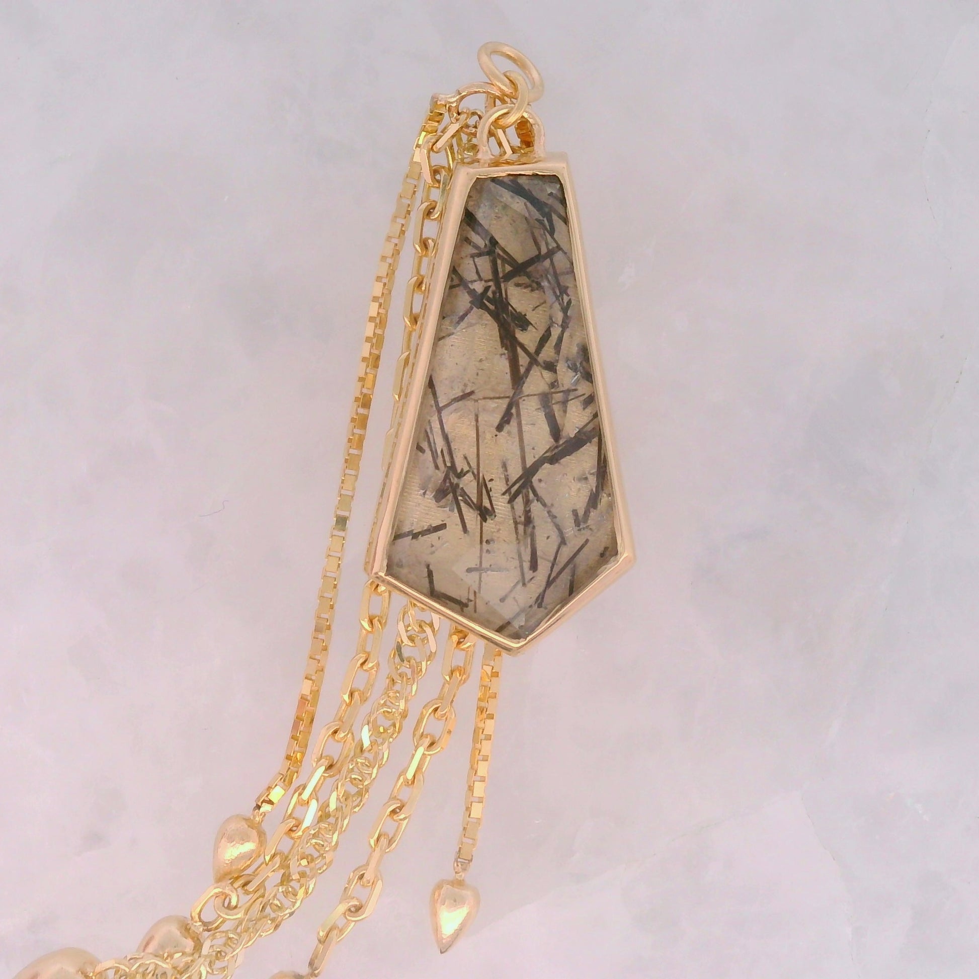 Geo Cut Tourmalinated Quartz Dangle with Five Droplets in Yellow Gold