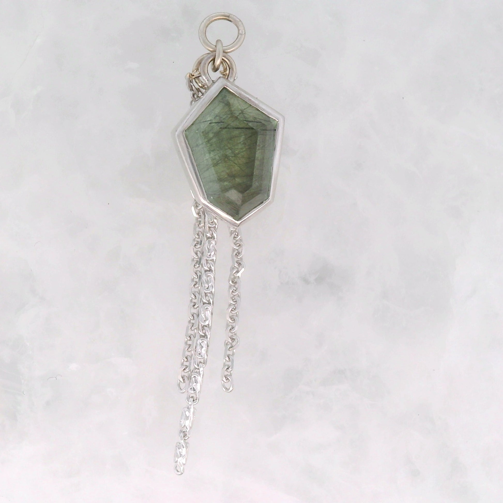 Peridot with Ludugwite Shield - 14k White Gold - Dangle