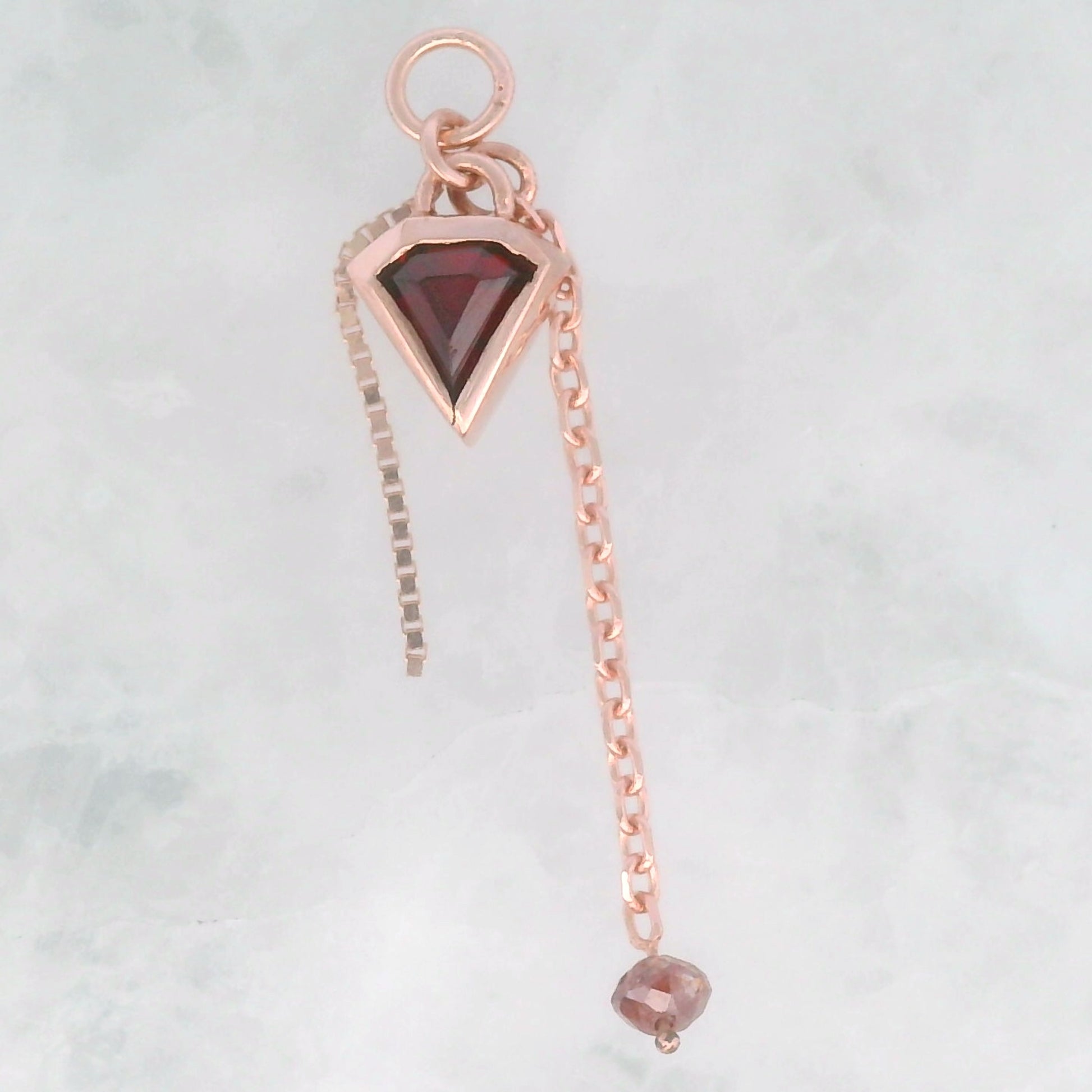 Red Garnet Geo Cut with Red Diamond Bead - 14k Rose Gold - Dangle