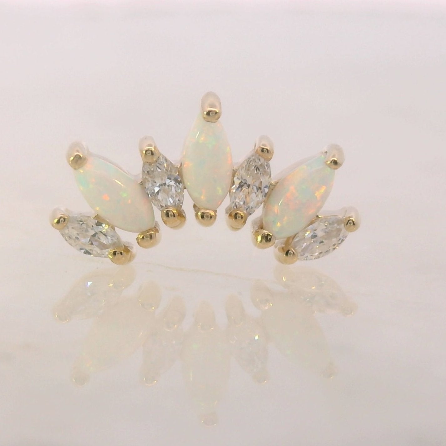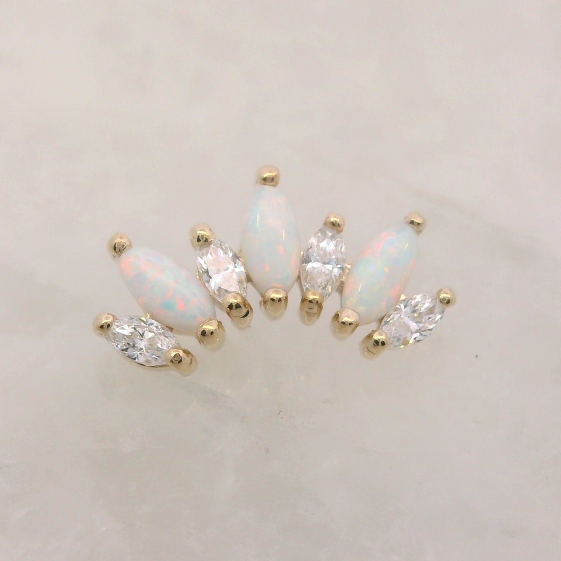 Gems: four 2.5x1.25mm, three 3x1.5mm marquise gems