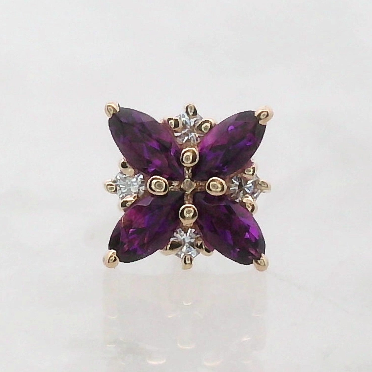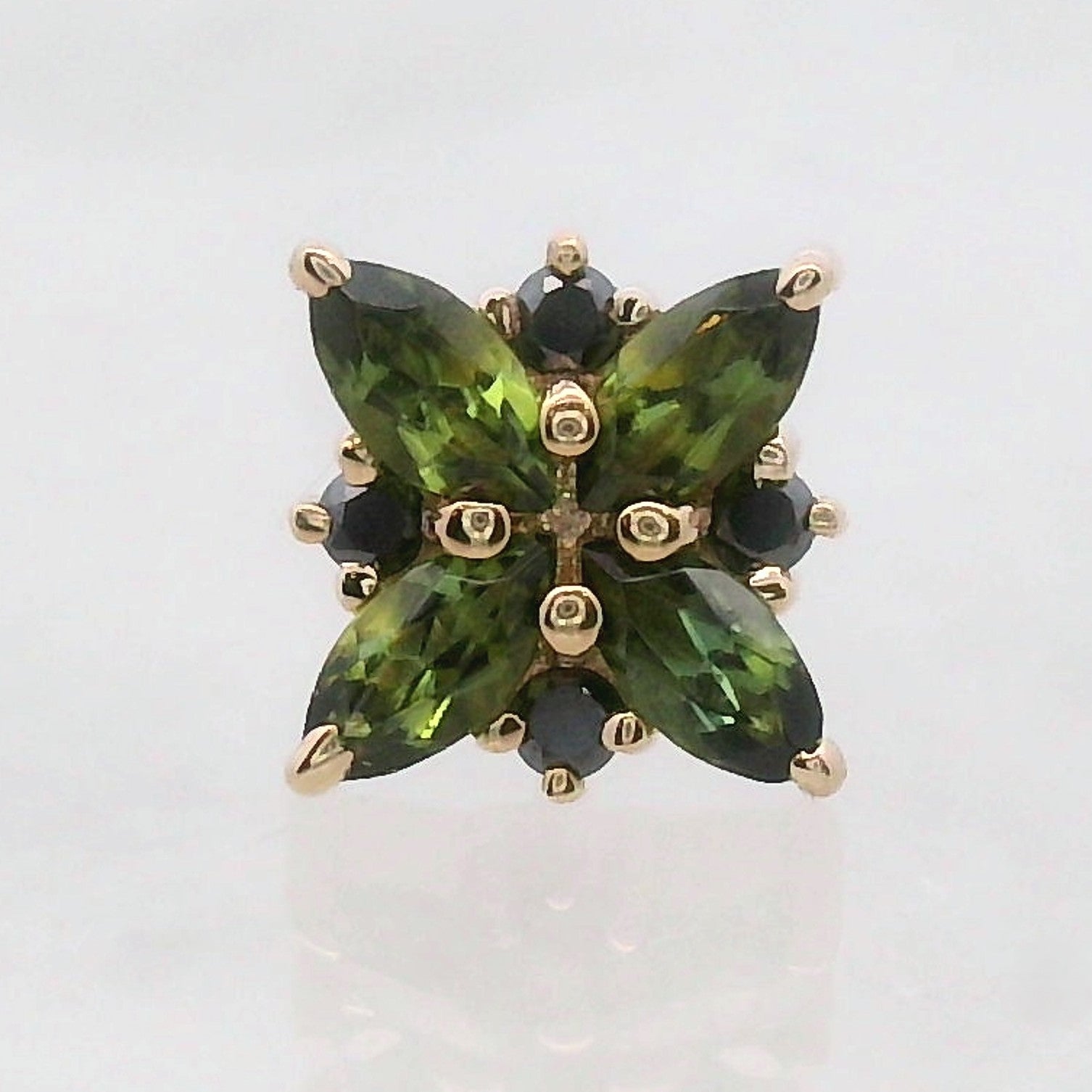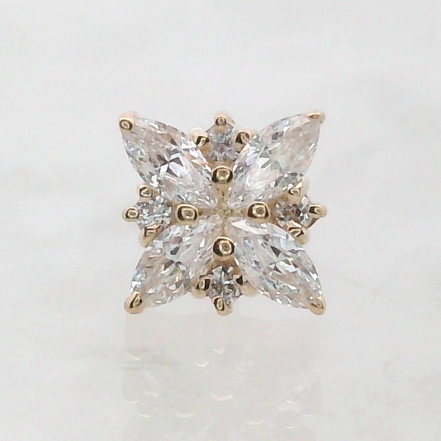 Gems: four 2.5x1.25mm marquise gems, four 0.8mm round gems