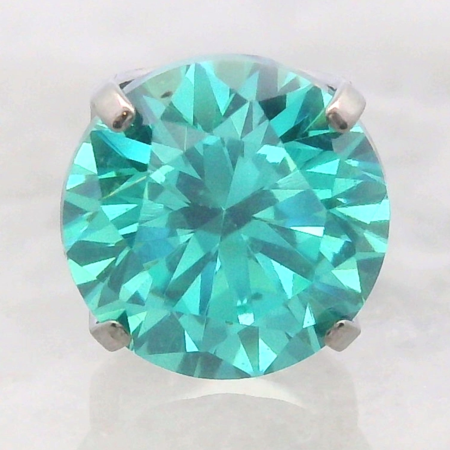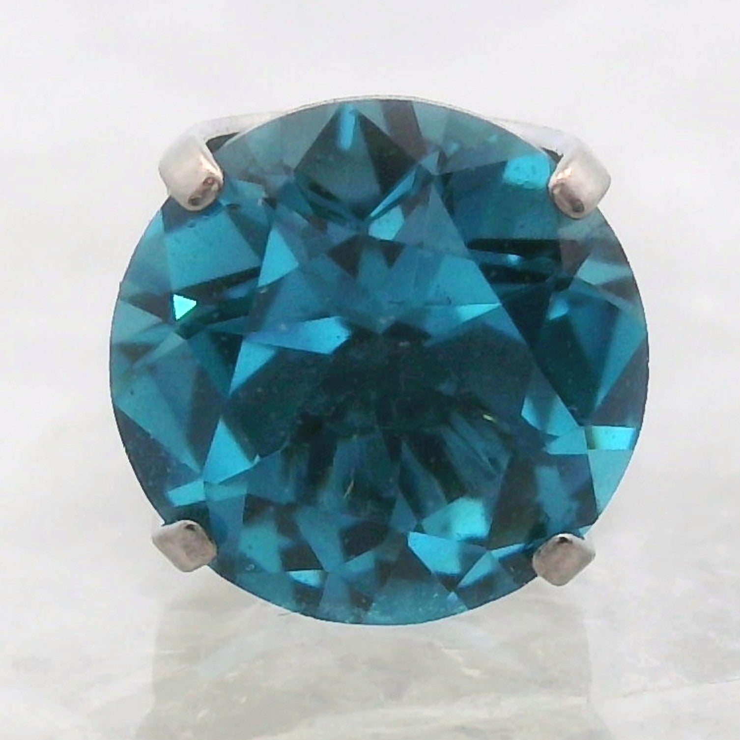 Faceted cubic zirconia in a prong setting.
